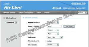 La AirMax2 puede funcionar como AP,cliente,bridge,repetidor,WISP Router o AP Router. Por lo tanto, puede transformar instantáneamente el CPE a diferentes aplicaciones inalámbricas. Si está creando una red WISP o sólo desea instalar un puente en su fábrica, AirMax2 tiene las funciones de software adecuado para usted. Simplemente comience seleccionando un modo inalámbrico,el AirMax2 mostrará sólo las opciones disponibles en ese modo.