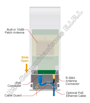 El AirMax2 viene con casi todo lo que se necesita para construir una conexión inalámbrica exterior de 2.4 GHz al instante. El CPE está construido con alto grado de materiales anti-UV para la protección de la luz solar prolongada y la lluvia. Por lo tanto, es adecuado para aplicaciones exteriores e industrial. Dentro del access point viene con una antena integrada de 10 dBi. El PCBA interno se desliza para un fácil mantenimiento. Para acelerar el proceso de instalación,posee 4 niveles de idicador LED para ayudarle con la alineación de la antena. El built-in Advanced Power Over Ethernet pasiva le permitirá a su AirMax2 operar hasta 100 metros de distancia de la fuente de alimentación.