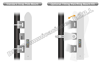 El AirMax2 está diseñado para ser montado usando las correas de plástico incluido para facilitar la instalación. Si se requiere un montaje en pared o otro tipo de montaje más rígido,se puede adquirir el Metal Wall Mount/Pole Mount Kit opcional. Permitirá al instalador ajustar el ángulo de mosaico para la alineación de antena más precisa.