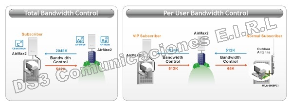 El AirMax2 proporciona la capacidad de control de ancho de banda total o por ancho de banda del usuario. Por lo tanto, los operadores WISP pueden ofrecer diferentes clases de velocidades de conexión para tarifas de suscripción diferente, al igual que el servicio ADSL.