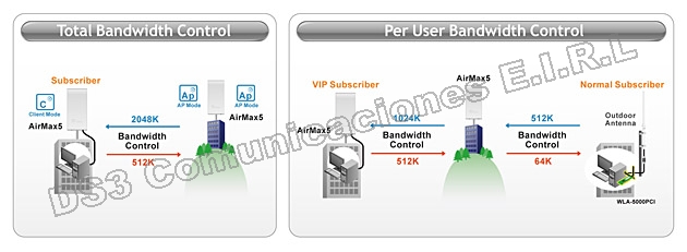 El AirMax5 proporciona la capacidad del control de ancho de banda del usuario. Por lo tanto,los operadores WISP pueden ofrecer diferentes clases de velocidades de conexión para tarifas de suscripción diferente,sólo