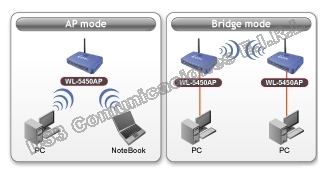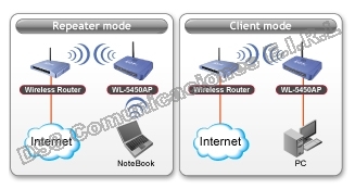 Al cambiar la configuración del software,el access point también puede funcionar como un puente inalámbrico para conectar redes locales a través de diferentes edificios o pisos. O actuar como un cliente de AP para conectarse con otro AP o router inalámbrico. Lo mejor de todo,para aquellos usuarios que necesitan extender la cobertura de la red inalámbrica,el WL-5450AP está equipado con la función de repetidor para amplificar la señal desde otro access point. El conector R-SMA permitir al usuario asignar antenas de mayor ganancia para distancias más largas.