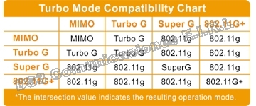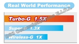 El Turbo-G de la familia AirLive ofrece una velocidad inalámbrica de 125 Mbps en el mismo coste que los dispositivos Wireless-G. A diferencia del modo Super-G que utiliza el canal de enlace de la tecnología,la solución Turbo-G puede entregar hasta 1.5 veces la velocidad del Wireless-G solución usando un solo canal,esto significa un rendimiento mayor y más estable. Lo mejor de todo,es compatible con las soluciones 802.11g y 802.11b.
