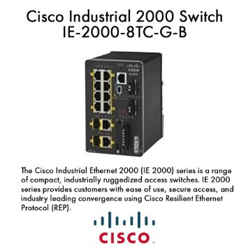 El 2000 (2000 IE) de la serie Cisco Industrial Ethernet es una gama de conmutadores de acceso compactos, robustos industrialmente. IE serie 2000 ofrece a los clientes la facilidad de uso, acceso seguro, y líder en la industria de convergencia mediante el protocolo de Ethernet resilientes Cisco (REP). Varias industrias como la automotriz, el petróleo y el gas, la minería, el transporte y las empresas de energía están requiriendo cada vez toda redes basadas en IP en sus áreas de producción. Las adiciones IE 2000 han sido diseñados para soportar la conectividad de capa de acceso y para satisfacer las crecientes necesidades de seguridad, voz y tráfico de vídeo a través de redes industriales.