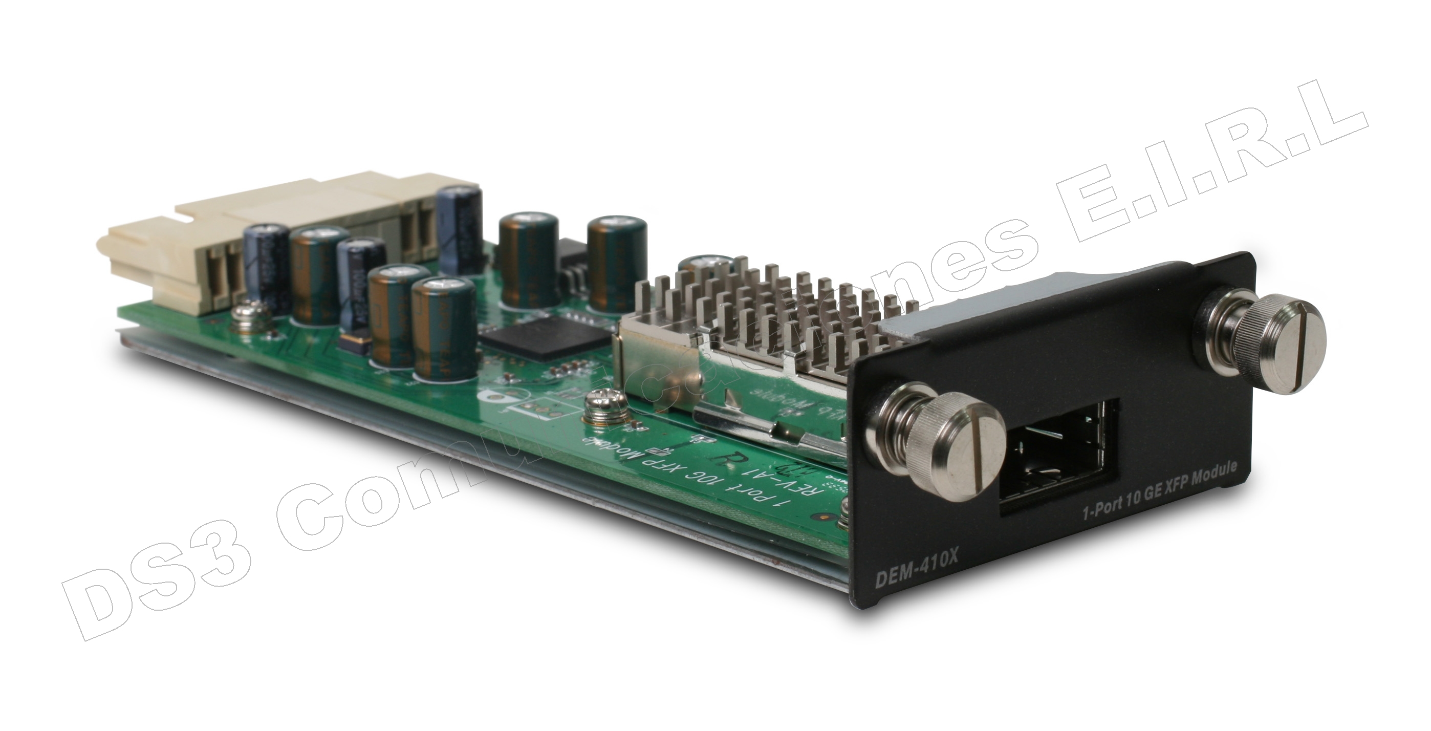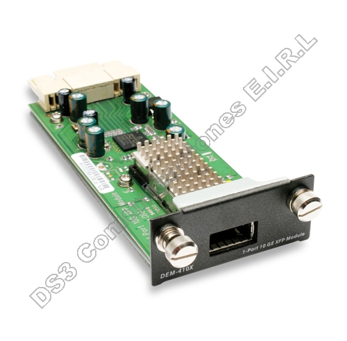 El DEM-410X es un módulo con 1 slot XFP para transceivers 10 Gigabit. Está creado para los modelos de la familia x Stack de D-Link DGS-3400 y DGS-3600 series. Cuando se conecta el DEM-410X al switch, ofrece 1 puerto uplink 10 Gigabit XFP para las conexiones a otros switches; cada módulo proporciona un ancho de banda de 20 Gigabit. Creado para atenuar cualquier cuello de botella que pueda producirse en el acceso al core de la red, el DEM-410X puede ser destinado a ser usado como un uplink a los servidores o switches de backbone en medianas o grandes empresas. El DEM-410X cumple con los estándares IEEE 802.3ae 10Gb/s. Gracias a los transceiver XFP opcionales, este módulo permite que el switch se conecte a redes y backbones distantes. Soporta funcionalidades de nivel 2, 3 y 4 de los switches compatibles; como por ejemplo: SNMP, VLAN ID, Port Mirroring, QoS y agregación de enlace. Por otra parte, el DEM-410X transmite y distribuye paquetes de datos en los niveles 2, 3 y 4, e incorpora tecnologías de switching y enrutamiento. El DEM-410X también incluye un led indicador que muestra el modo y actividad del enlace 10 Gigabit. Al usar los XFP de D-Link, se puede eliminar o añadir cualquier transceiver sin tener que apagar el switch, con lo que se puede gestionar la red sin tener que desconectar el equipo.