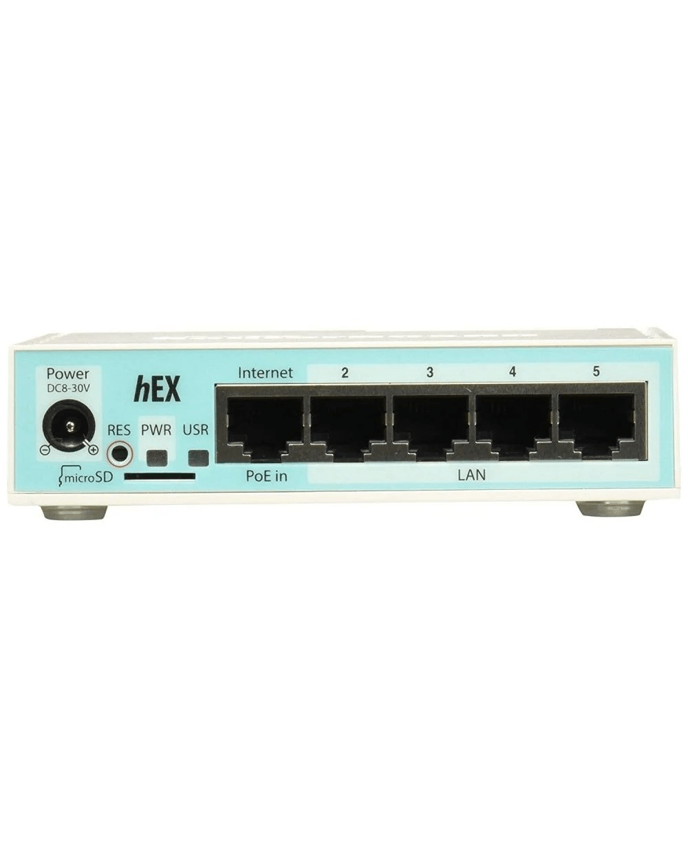 El MikroTik hEX (RB750Gr2) es un router compacto y rentable que ofrece conectividad Gigabit pura y rendimiento sólido para redes cableadas. Cuenta con CPU de 720 MHz y 64 MB de RAM, ideal para ejecutar RouterOS Nivel 4 eficientemente.