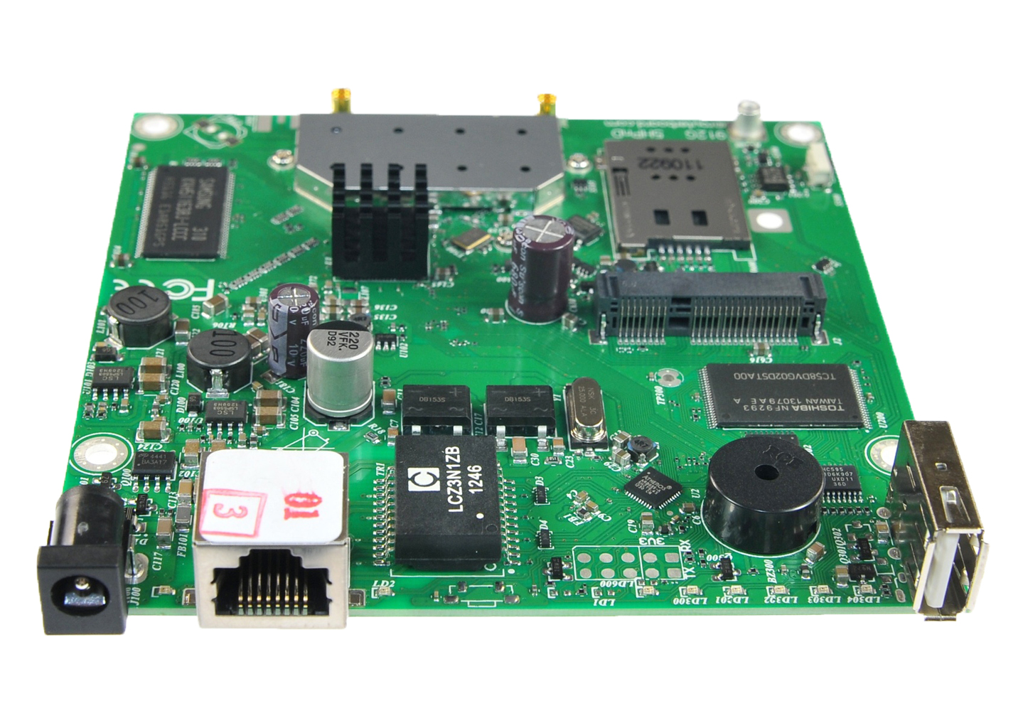 RouterBOARD de 2.4 GHz 802.11b/g/n Mimo 2x2 de alta potencia con antenas integradas, con 05 puertos 10/100 marca Mikrotik