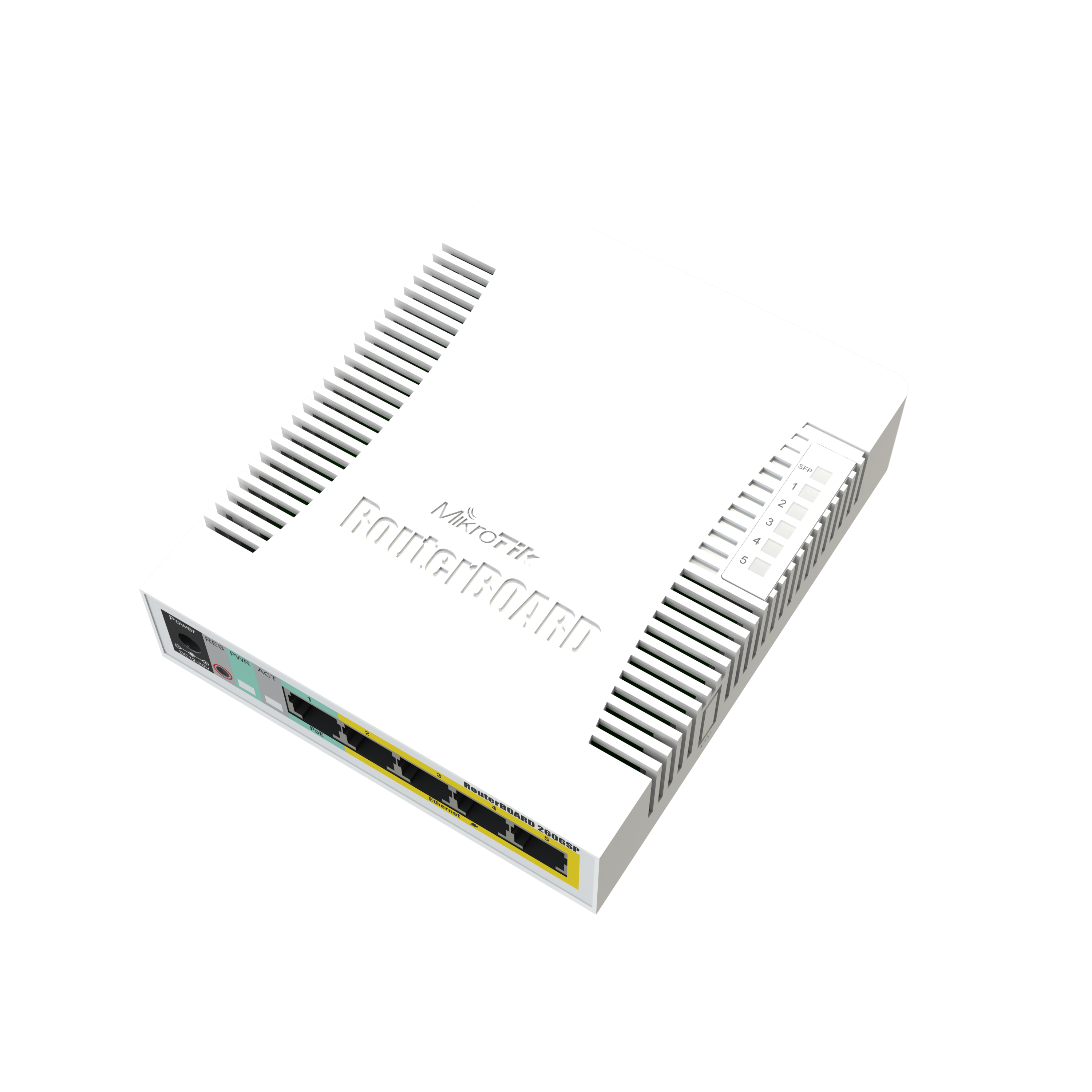 RB260GSP Cloud Smart Switch CSS106-1G-4P-1S con 5 puertos Gigabit PoE, 1 puerto SFP, 128 KB, plastic case, SwOS, marca Mikrotik