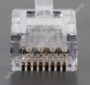 - Posee ocho "pines" o conexiones eléctricas, que normalmente se usan como extremos de cables de par trenzado.