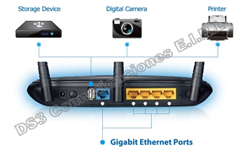 - Su versátil puerto USB 2.0 posibilita que los usuarios conectados a la red puedan compartir archivos a través del servidor FTP integrado en el router.