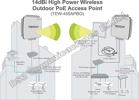 - Salida DC para inyector de alimentación PoE: 48 VDC, 0.4 A.