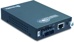 El Convertidor de medios de fibra serie TFC-100 de TRENDnet transforma un medio UTP/STP 100Base-TX en un medio 100Base-FX y viceversa. El puerto 100Base-TX autonegocia una conexión half-/full-dúplex y además cuenta con conmutador deslizante para tipos de medios MDI-X / MDI-II. La conexión de fibra puede ser a través de un conector multi-modo SC, MT-RJ, o modo sencillo SC, también soporta modos half-dúplex y full-dúplex. Este convertidor le ofrece a su Conmutador/Hub la capacidad de interconectarse con conexiones de fibra a una distancia de hasta 15 km. Con un chasis opcional para montaje en rack de 16 ranuras de EIA-19", los convertidores serie TFC son la solución perfecta para varias conversiones de medios de fibra a través de su red.