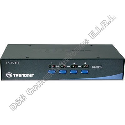 El Switch KVM de 4 puertos TK-401R de TRENDnet le permite manejar hasta 4 PCs con tan sólo un teclado, monitor y mouse. ¡Intercale entre múltiples PCs con simplemente presionar un botón!. Elimina la complicación del intercambio de cableado. Ahorre dinero y espacio con el TK-401R. Este Switch KVM viene con un juego para montaje en rack EIA-19” en la sala del equipo y el laboratorio informático. Rico en funcionalidades tales como operaciones de Hot-Plug, autoescaneo y Hot-Key, el TK-401R de TRENDnet es la opción perfecta para la gestión de múltiples Pcs.