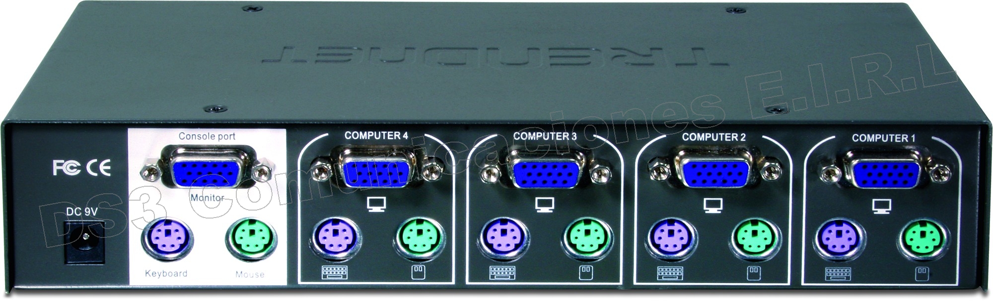 Switch KVM TRENDNET PS/2 de 4 puertos para montaje en rack TK-401R