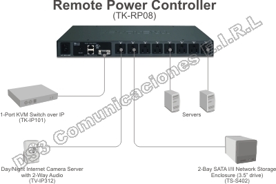 El controlador de alimentación remoto de 8 salidas (TK-RP08) ofrece un control remoto para apagar o encender dispositivos dentro de su red. Dé servicio, reinicie y resuelva los problemas de su red desde cualquier sistema computarizado.