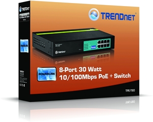 El conmutador PoE+ de 8 puertos a 10/100 Mbps de 30 vatios de TRENDnet, modelo TPE-T80, reduce los costos en instalación y equipos al transmitir datos y corriente a través de los cables Ethernet existentes. El estándar IEEE 802.3at PoE+ suministra hasta 30 vatios por puerto para dispositivos tales como puntos de acceso inalámbrico de alta potencia PTZ (Pan Tilt Zoom) cámara de Internet y sistemas de telefonía VoIP.