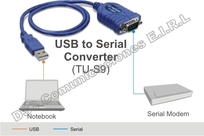 Este convertidor de USB a Serial le permite conectar un dispositivo serial RS-232 de un módem a puerto USB en su PC de escritorio o portátil.