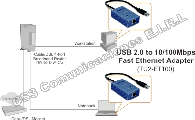 El TU2-ET100 es un adaptador de red USB de alta velocidad que le permite conectarse de forma instantánea a una red de 10/100 Mbps mediante un USB habilitado para PC portátil o Notebook. Además, es compatible con USB 2.0 y tiene compatibilidad regresiva con USB 1.0 y 1.1, por lo que podrá compartir archivos e impresoras así como obtener acceso a Internet de banda ancha para explorar los valiosos recursos de la Web.