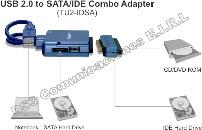 - Convierte un disco duro interno IDE/SATA o CD/DVD-ROM en un dispositivo USB externo.