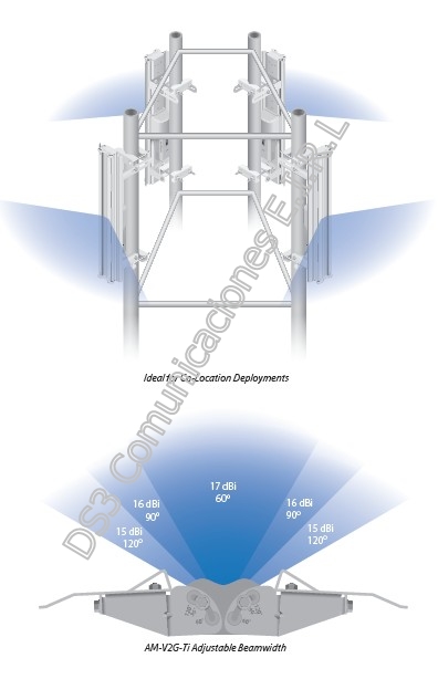 Antena Sectorial airMAX TITANIUM 5.8 GHz doble polaridad ángulo variable 60º - 120º ganancia variable 15 dBi - 21 dBi aislamientoRF