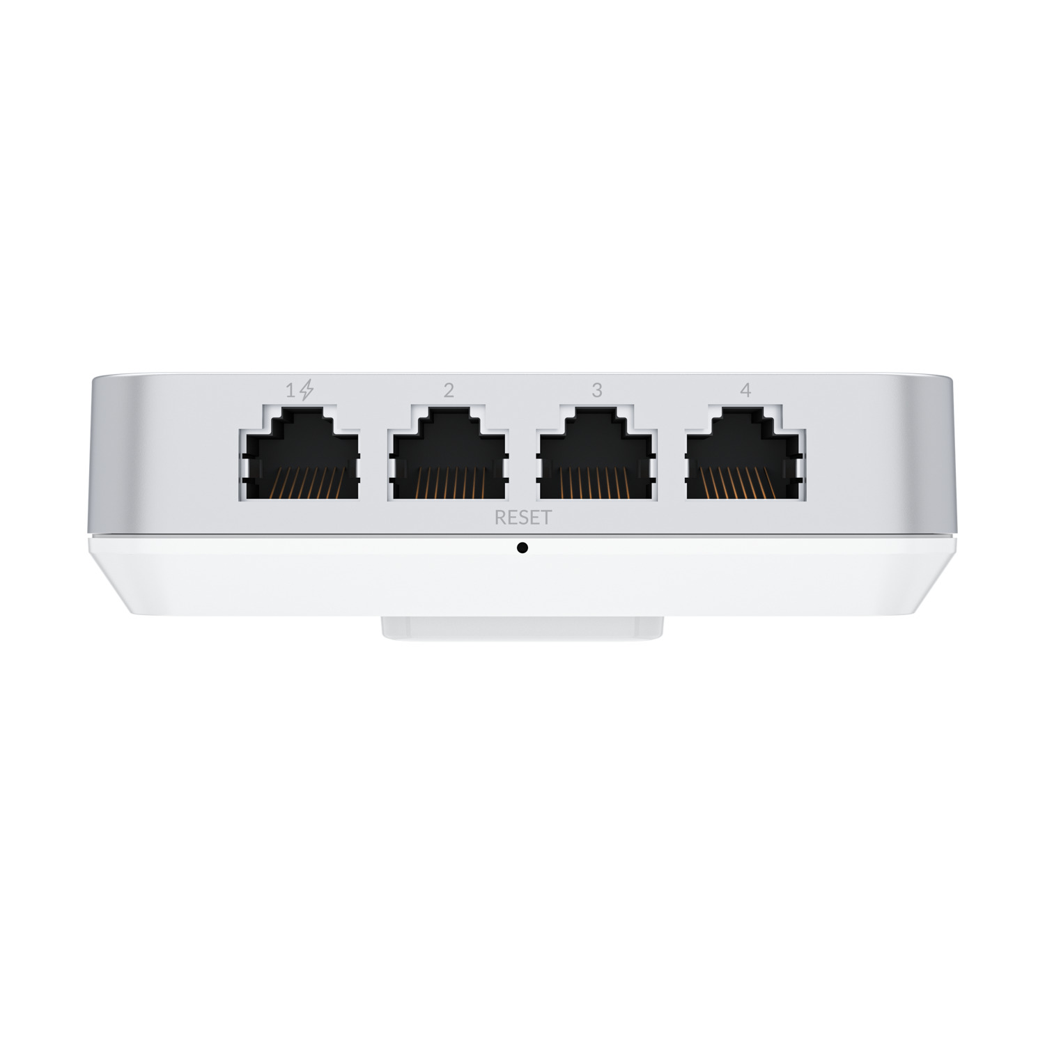 Access Point Wi-fi 6 In-Wall de doble banda 2,4 GHz/5 GHz (4x4 MU-MIMO y OFDMA), tasa de rendimiento de hasta 5,3 Gbps, 802.11ax, 01 puerto GbE PoE In, 04 puertos secundarios GbE (uno es PoE Out), no incluye Inyector PoE, UBiQuiti