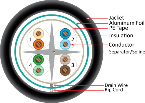 - 550MHz ancho de banda para aplicaciones de datos, Fast Ethernet y 155Mbps TP-PMD / CDDI, Categoría-6 de par trenzado apantallado
